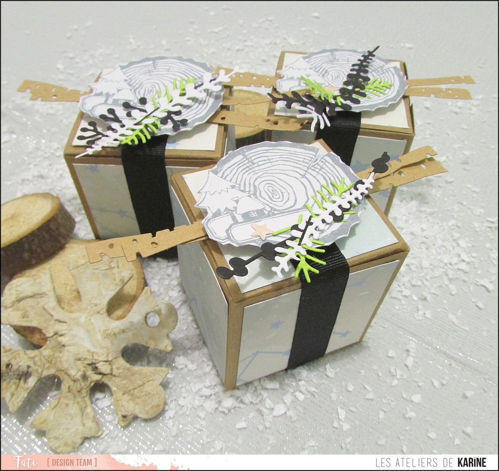 Vous êtes toujours là ? Vous nous suivez toujours ? Une nouvelle et belle création ce jour avec Fati qui nous propose de jolies boites cadeaux ! Avec toujours la collection Douceur Hivernale et en vedette ici mon chouchou le tampon "P'tit rondin" !